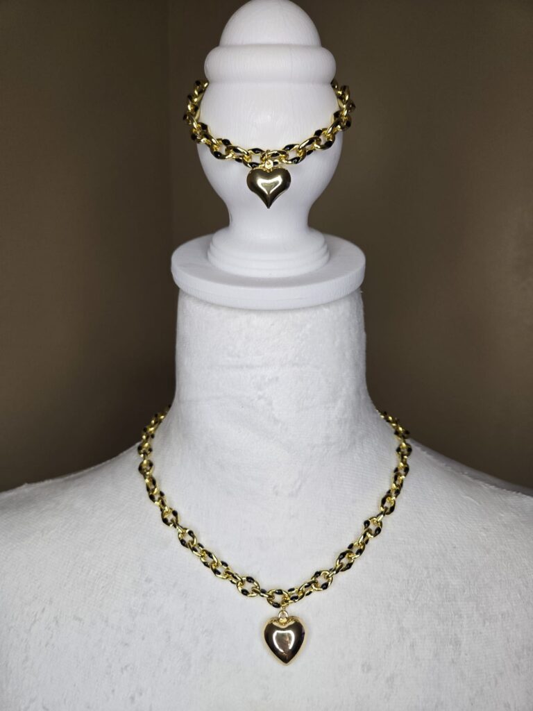Gold & Black Chain-Link Heart Set
