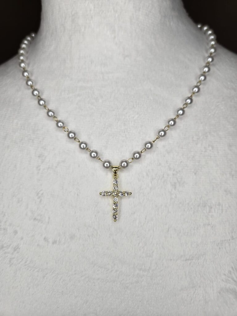 Pearl Chain Necklace w/ White Cross Pendant