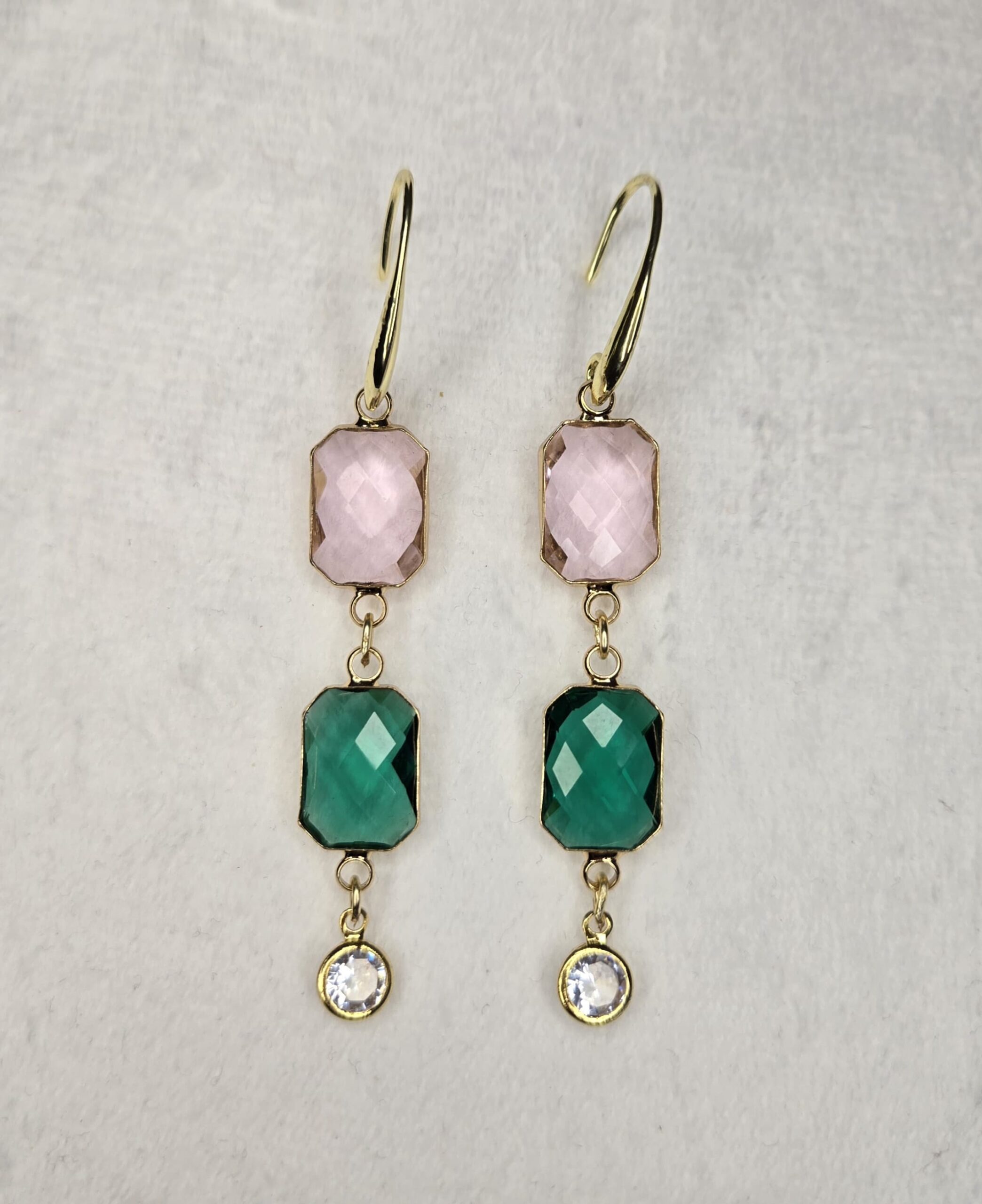 Emerald and Pink grade A crystal rectangle rhinestones with gold-plated setting